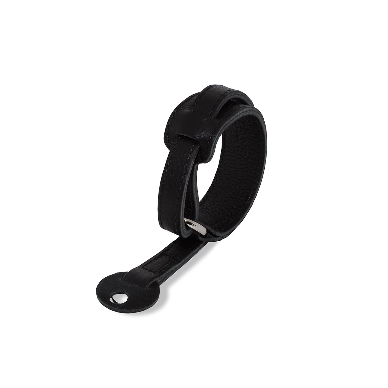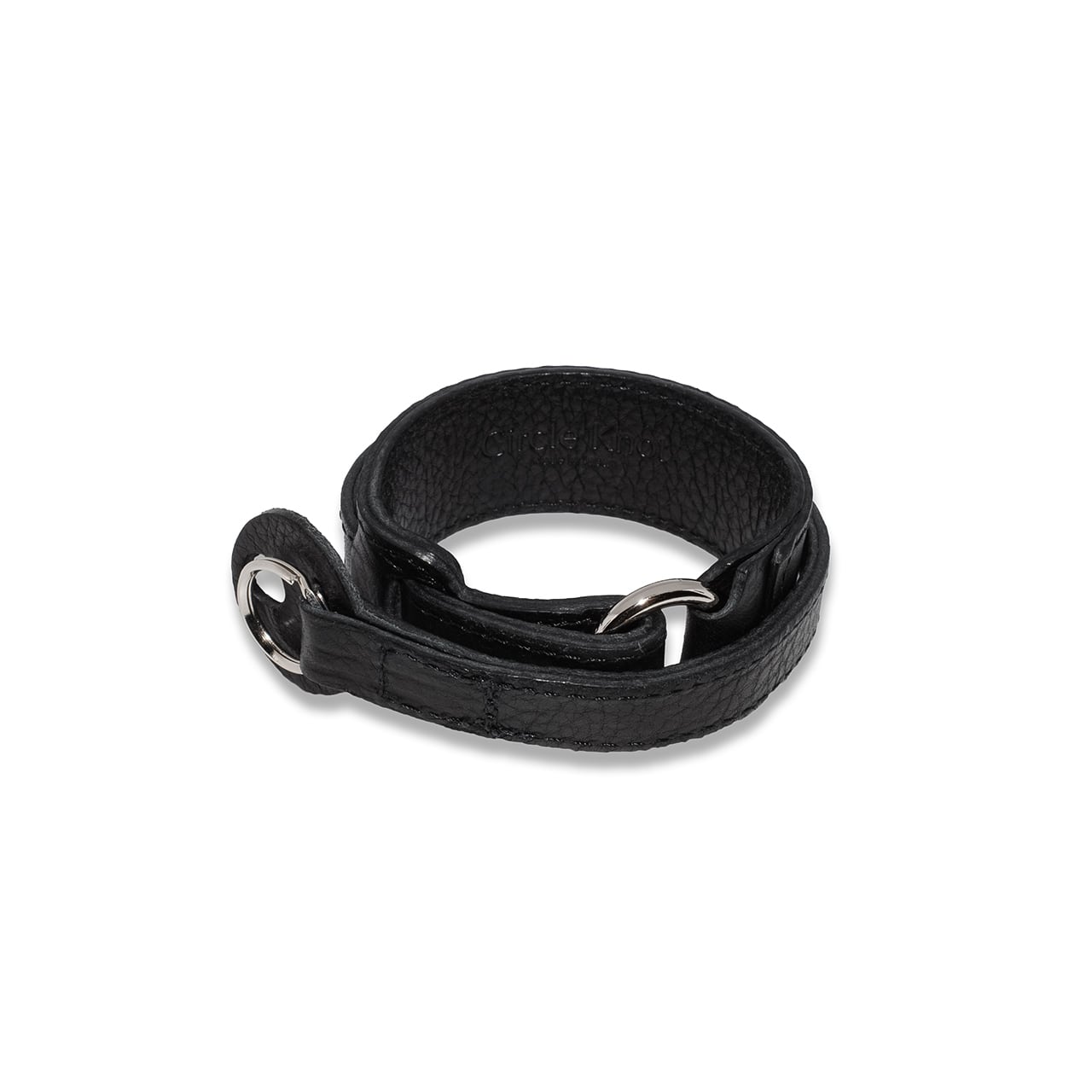 2つのホールに通した革ベルトをスライドさせることで、サイズ調整が可能です。